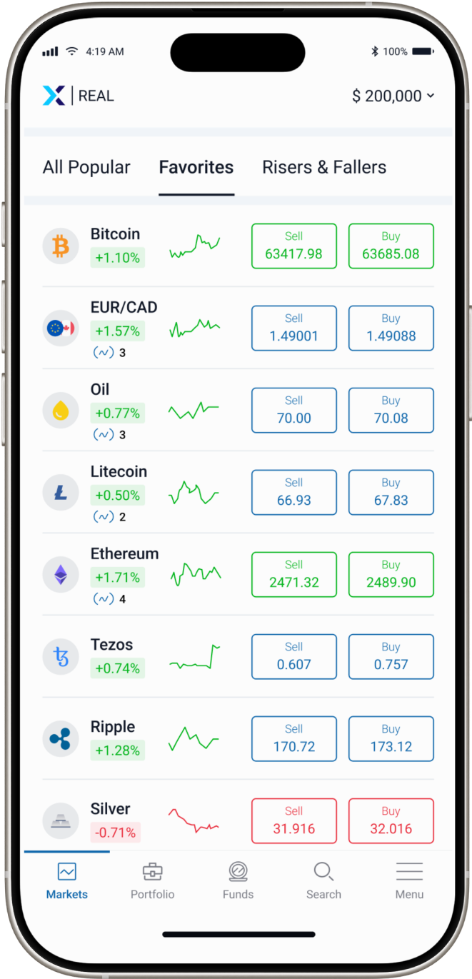 Stay connected to the markets at all times with XTrade's robust mobile platform. Take advantage of real-time charting, monitor your open positions, and easily set your desired take profit levels, all while enjoying a wide range of powerful trading tools.